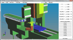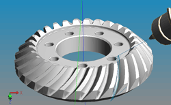 The demonstration milled a forged blank for a Crown Wheel Gear on an older Mazak VQC 20. Prior to the demo, the Mazak was measured using laser and a loaded double ball bar. Next, ASME B59.2 software developed by NIST used this information to predict the positional accuracy of the actual tool movements. Finally Cross-section based force calculation software developed by Boeing used cross section information in the STEP-NC machining data to predict the deflection of the cutting tool under load.