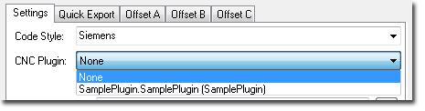 When you are happy, copy your DLL to the "plugins" directory under the STEP-NC Machine installation. Click on the "Configure" button above and the settings dialog will show a list of available plugins to pick from. The plugin will be remembered and loaded whenever you run STEP-NC Machine.